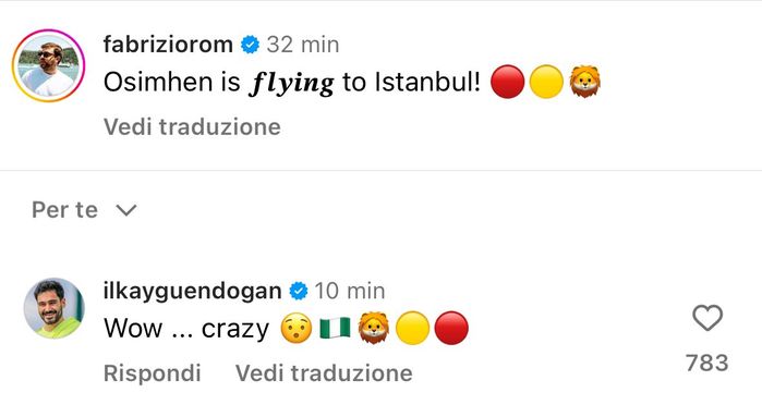 İlkay Gündoğan yaptığı yorumda, “Wow… Crazy” ifadelerini kullandı.